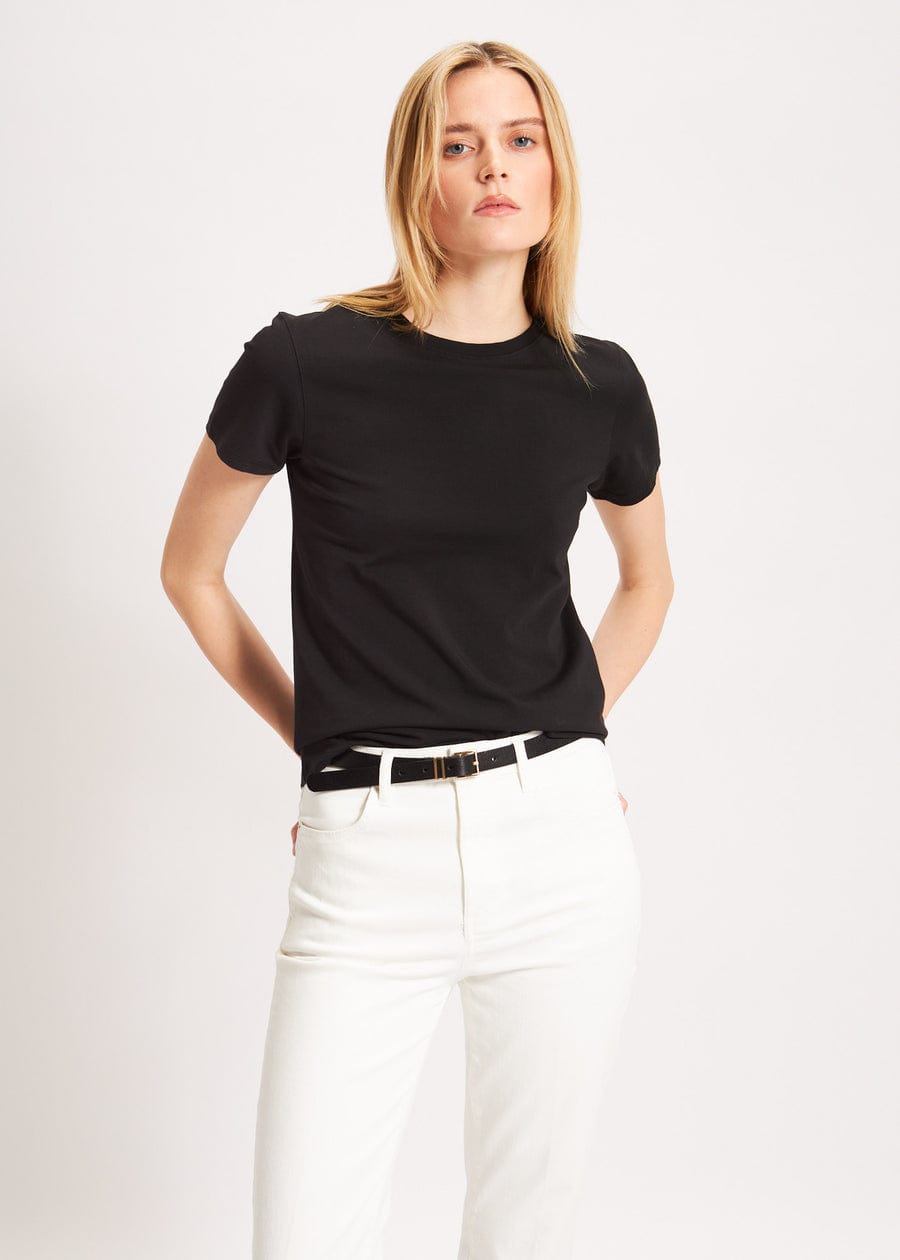 Ce t-shirt de coupe ajustée de Patrick Assaraf est fabriqué à partir d'un jersey extensible en coton pima péruvien iconique. Flatteur, ce t-shirt est extrêmement confortable, doux et durable. Il deviendra une de vos bases préférées.