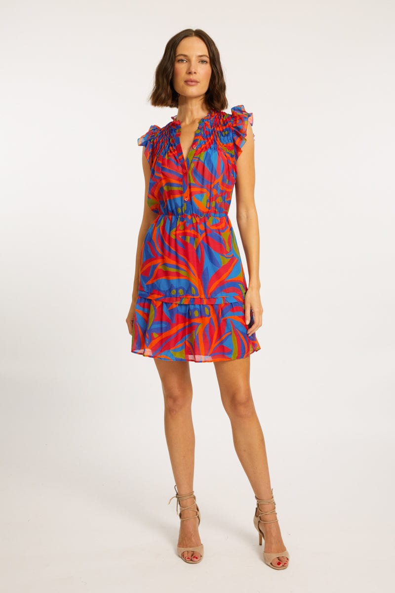 La robe Boa de Caballero, ornée du vibrant imprimé Passion Palm, allie style et confort. Dotée d'un empiècement smocké sur le devant, elle apporte texture et attrait visuel. Ses manches flottantes soulignent sa féminité, tandis que sa jupe à volants ajoute fluidité et mouvement. Avec sa taille élastique pour une coupe flatteuse, la robe est également dotée de boutons descendant jusqu'à la taille, apportant une touche raffinée. Confectionnée dans un doux mélange de coton et de viscose, la robe Boa est respirante et idéale par temps chaud. Avec son imprimé tropical audacieux et ses détails élégants, elle est idéale pour les occasions décontractées comme plus habillées.
