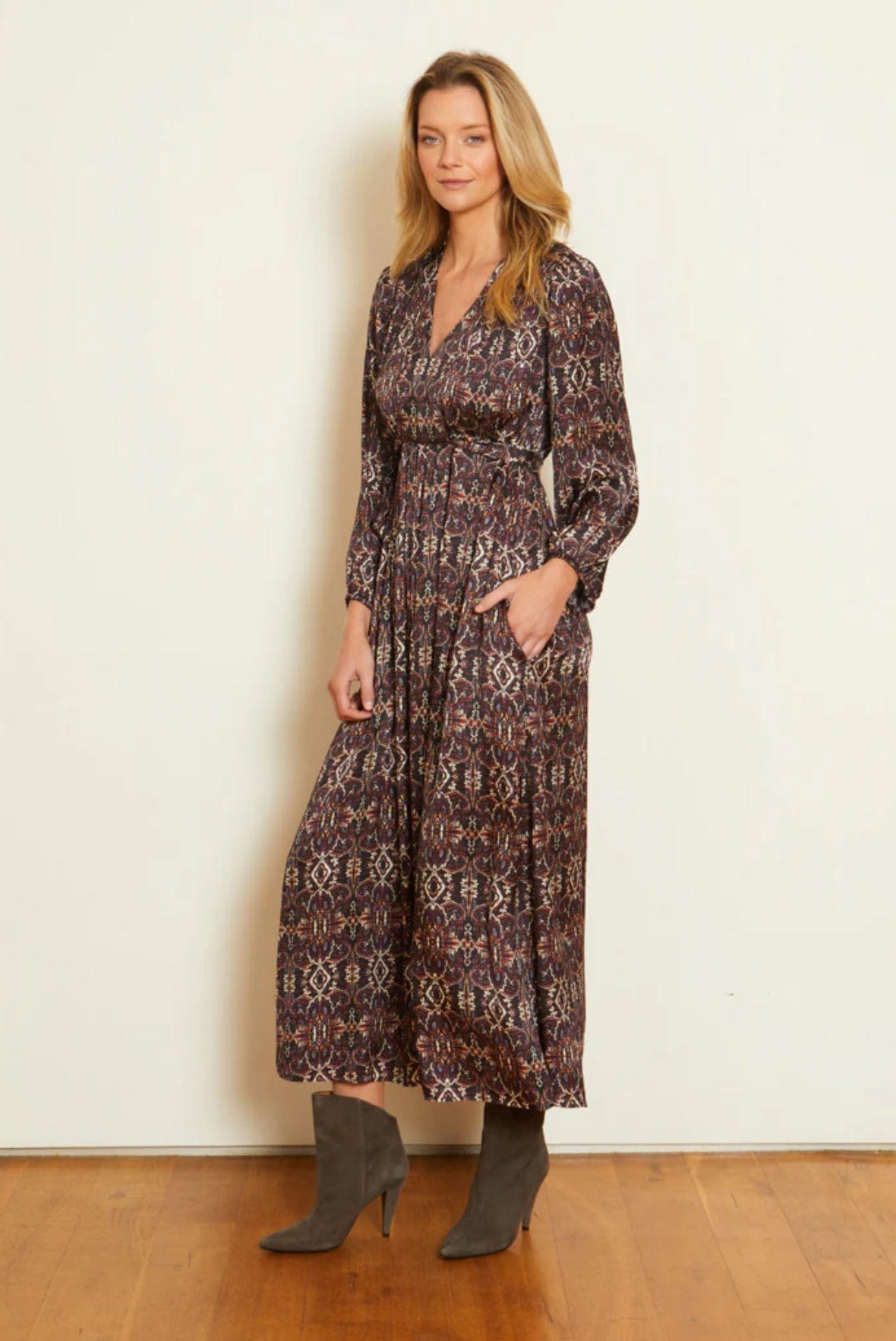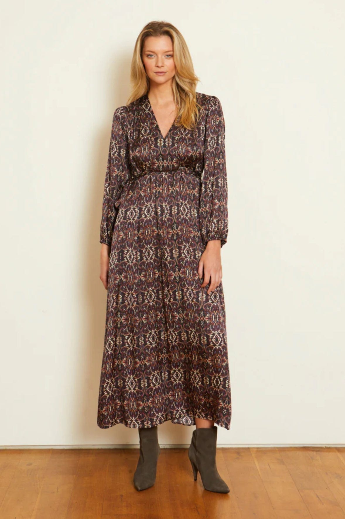 La robe Darcy de Caballero redéfinit l'élégance avec sa coupe facile et son design époustouflant. Cette robe midi présente des détails sur mesure comme un cordon à nouer et un dos plissé, permettant un ajustement personnalisé. Les poignets élastiques vous permettent d'ajuster la longueur des manches pour une touche de style classique. Confectionnée dans un doux mélange de modal et de soie, elle drape magnifiquement le corps. L'imprimé Rusted Deco est un design captivant faisant de la robe Darcy le style idéal année après année.