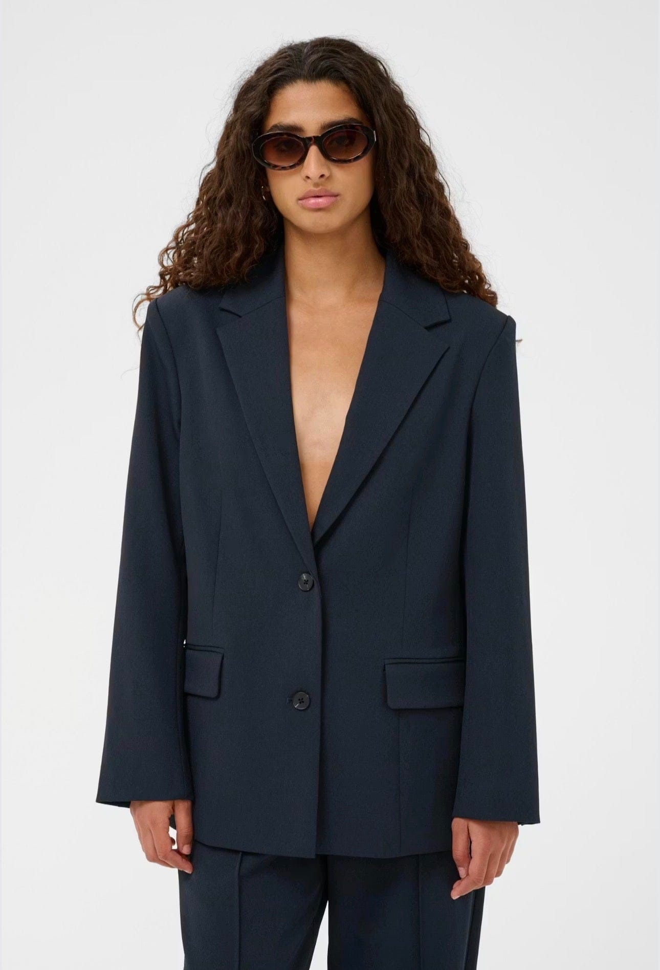Le veston SLLilu de SOAKED IN LUXURY est un blazer croisé à la coupe droite structurée. Il présente des revers crantés, une fermeture à deux boutons, des poches à rabat sur le devant et des finitions soignées pour une silhouette élégante et affirmée. N'hésitez pas à le décontracter avec un jean.