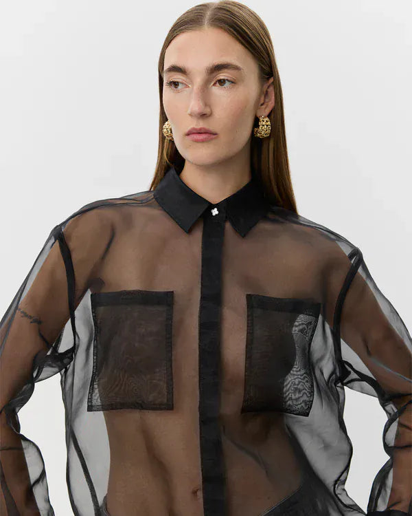La chemise transparente Donnasw de SOFIE SCHNOOR présente une coupe oversized, un col chemise classique et deux poches poitrine plaquées. Parfaite pour ajouter du punch à vos tenues, elle se porte dedans ou dehors le pantalon avec une camisole ou bralette.
