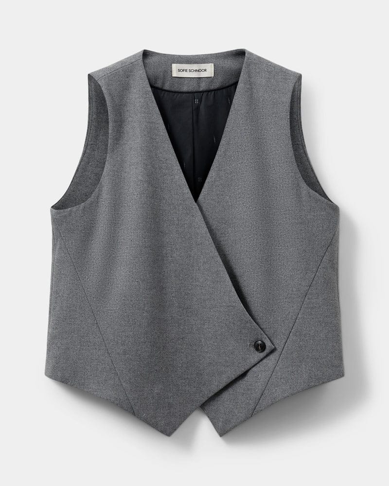 Le gilet Virginiasw de SOFIE SCHNOOR est une veste sans manche cache-cœur avec une coupe droite décontractée. Chic, élégant et versatile, il pourra aussi bien passer du bureau aux occasions plus habillées. Agencez-le avec son pantalon Rosalindsw assorti pour une tenue complète.