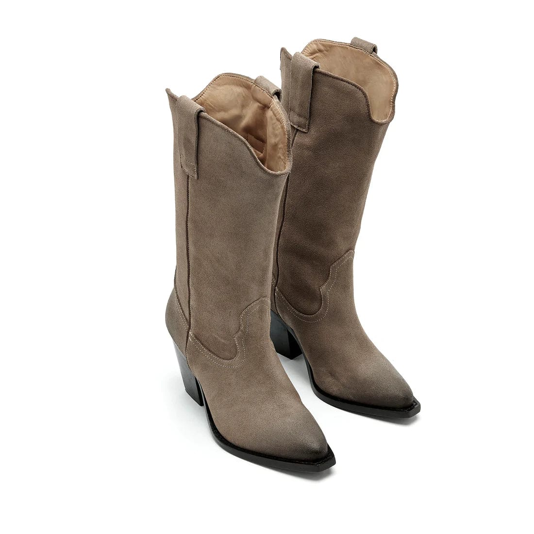 Rehaussez vos looks dans ces bottes d'inspiration western en cuir riche. Le bout pointu et le talon carré épais donnent une botte de cow-boy classique tandis que le style raffiné offre une touche avant-gardiste.