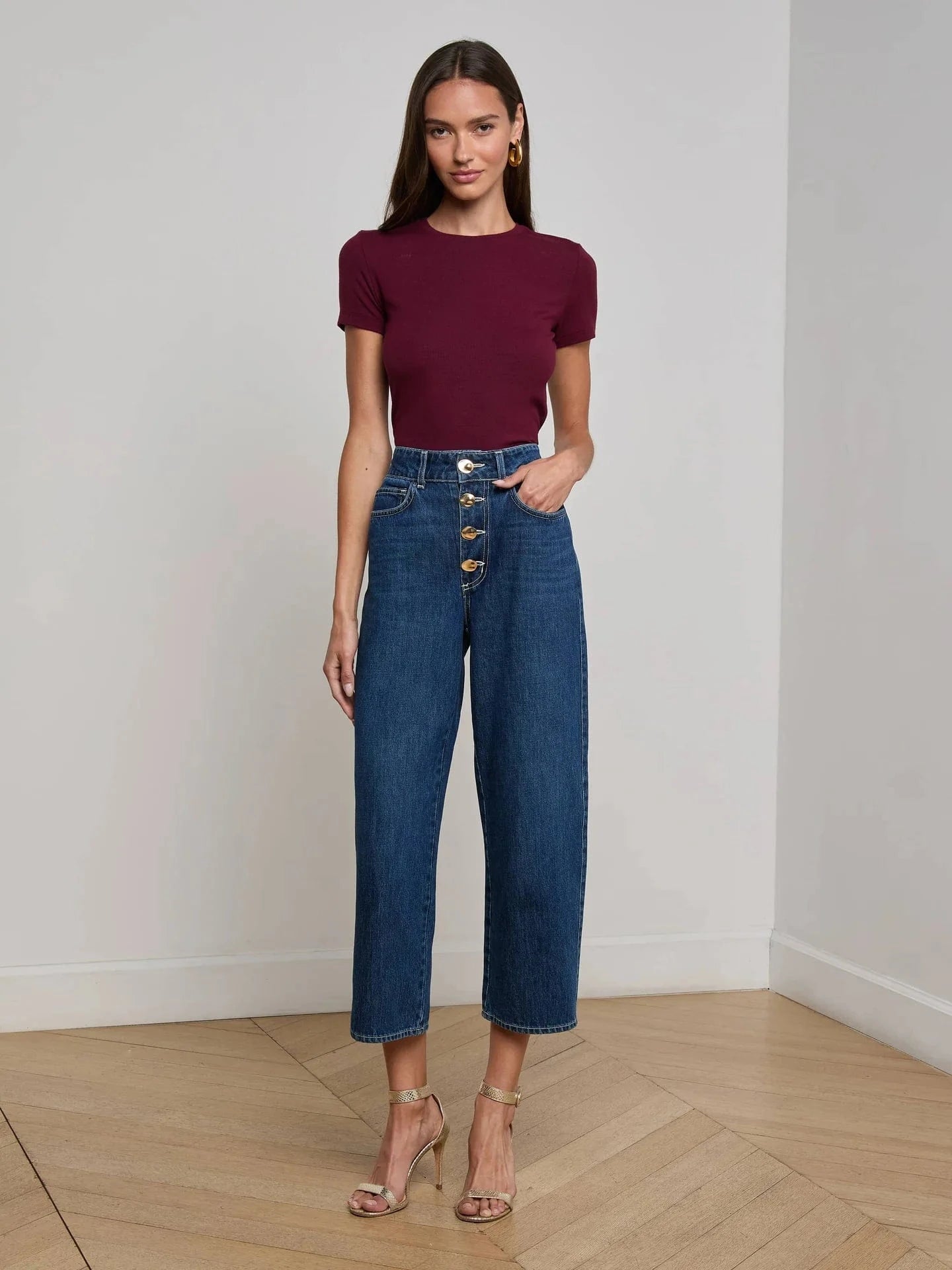 Dans une fabrication douce et souple, le t-shirt Ressi de coupe slim présente des manches courtes flatteuses. Ce favori de L'AGENCE est de retour dans un bourgogne audacieux. Il est à porter à chaque saison ; seul ou en-dessous d'un veston.