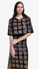 Faites tourner les têtes avec ce magnifique haut fleuri à paillettes extensible mécanique de Smythe. Ce t-shirt de fantaisie comporte une emmanchure descendue, une manche volumineuse et une fermeture en trou de serrure à l'arrière du cou. Il est à porter chic ou décontracté avec un denim, un pantalon propre ou une jupe.