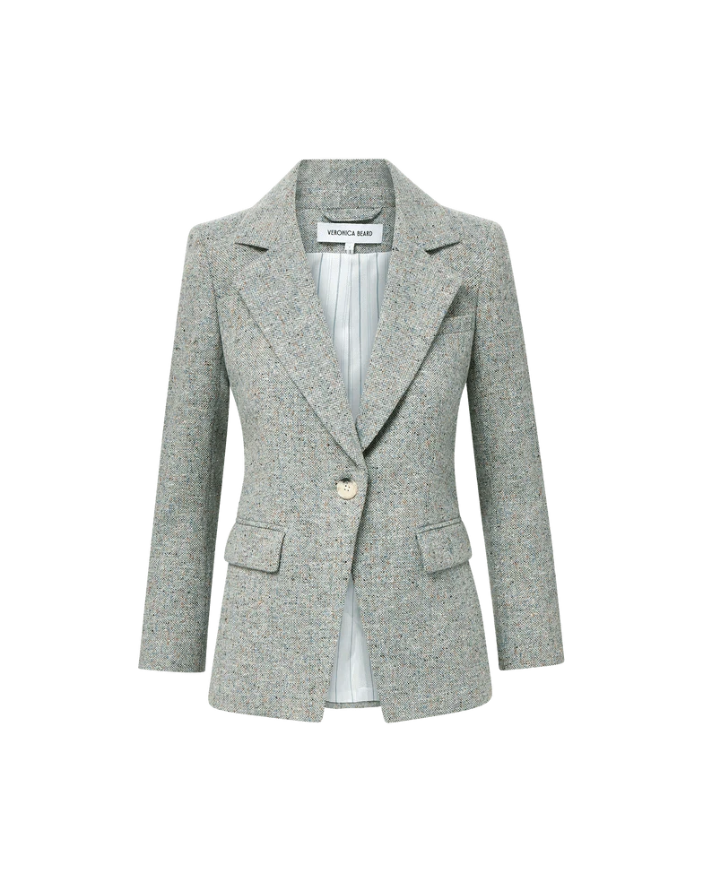 Un classique chic. Le blazer Healy à boutonnage simple de Veronica Beard est confectionné avec soin dans un mélange de laine italienne bleu moucheté, offrant une texture riche et un volume généreux. Ses poches à rabat, ses boutons marbrés et son revers cranté lui confèrent un charme intemporel. Associez ce blazer chiné à un jean et à vos bottes préférées pour un look élégant, parfait pour aller au bureau ou prendre un verre.