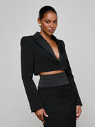 Avec sa coupe courte et ses revers en satin au fini brillant, le blazer Daxton de L'AGENCE réinvente les tenues de soirée. Confectionné dans un tissu de tailleur élastique et doté d’un seul bouton, il se marie parfaitement avec un pantalon taille haute pour une allure à la fois moderne et captivante.