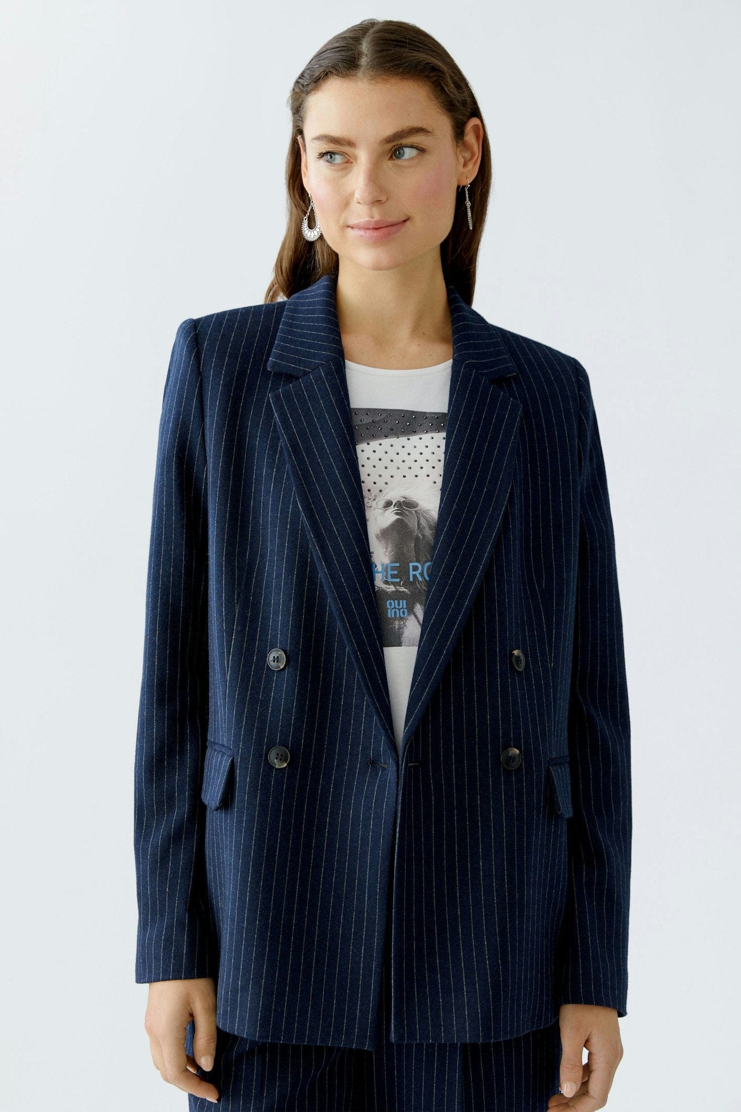Ce blazer de OUI FASHION, confectionné en jersey doux et confortable, présente de fines rayures tissées. Décontracté et versatile, il sera parfait porté avec un t-shirt et votre paire de jeans préférée pour une tenue de tous les jours. Agencez-le également avec son pantalon à plis assorti pour un look tailleur classique.