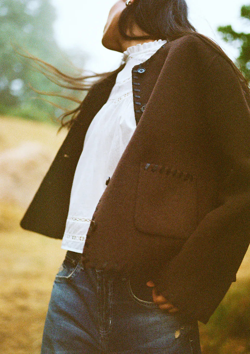 La veste Melanie de RAILS, en laine épaisse, est à la fois élégante et confortable. Son style unique et soigné est rehaussé par des surpiqûres contrastées, des boutons et une coupe carrée. Portez-la dehors comme dedans avec votre jean préféré.