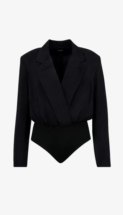 Un blazer rentré est l’un de nos looks préférés. Ce bodysuit de SMYTHE, dans un tissu cupro drapé intemporel convenant à tous les climats, offre un look sans volume. Avec sa silhouette décontractée, ce nouveau body blazer présente des épaules marquées, un large revers avec un passepoil exagéré et une coupe string. Il est à porter autant habillé que décontracté avec un jean.