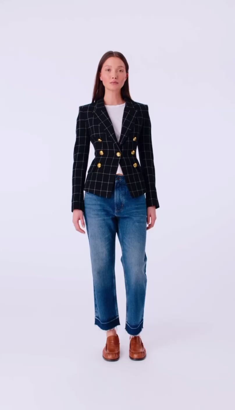 De coupe ajustée, cette nouvelle silhouette de SMYTHE reprend tous les atouts du blazer Not a DB, dans une version plus courte et haute. Confectionné en laine lavée européenne, chaque pièce, de par sa fabrication, est unique par son motif et sa texture. Ce veston est à associer à un jean et un t-shirt classique pour un look décontracté raffiné.