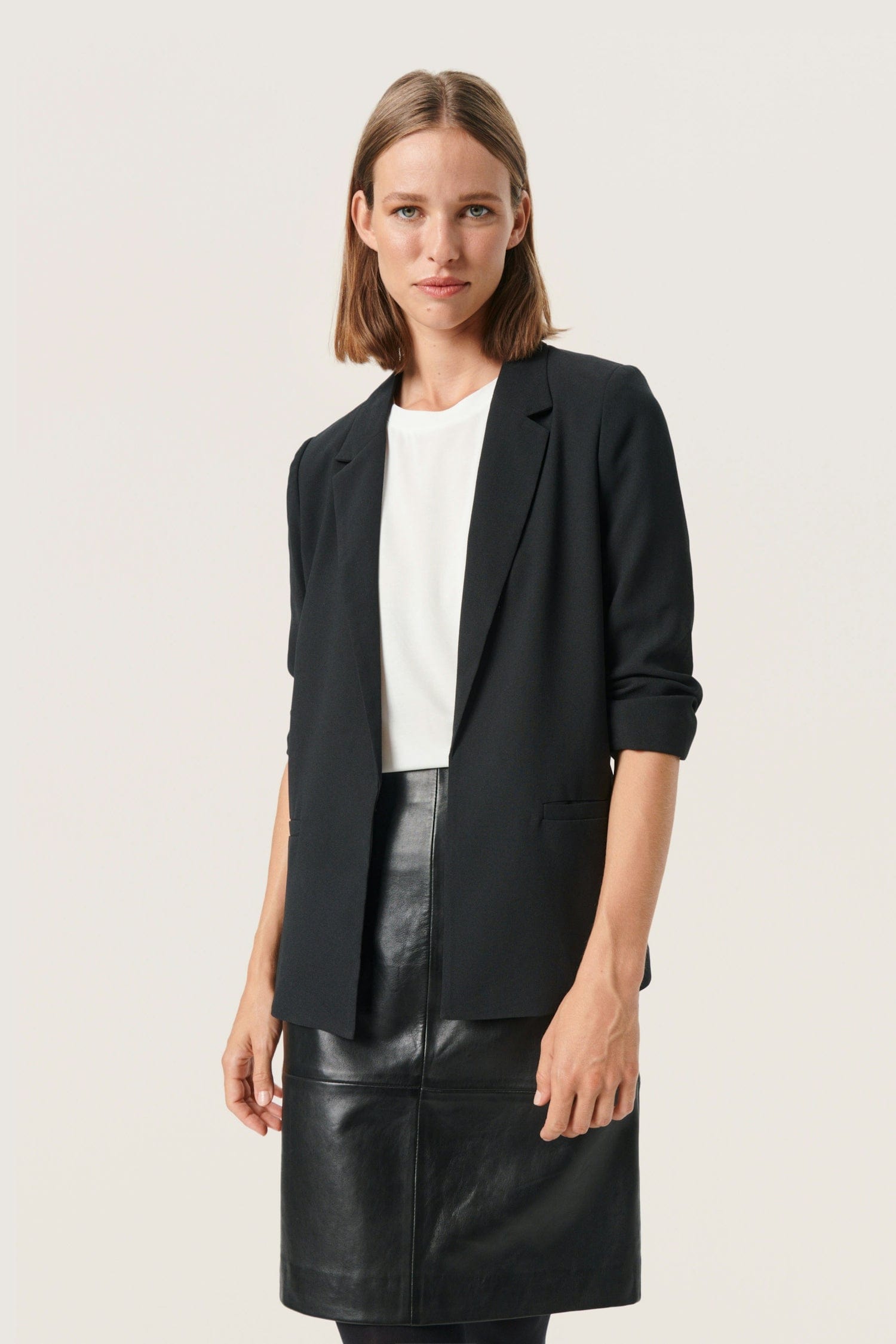 Le veston SLShirley de Soaked In Luxury est un blazer de coupe classique aux manches 3/4, à poches latérales et à revers. Il deviendra votre veston passe-partout à porter autant décontracté qu'habillé.