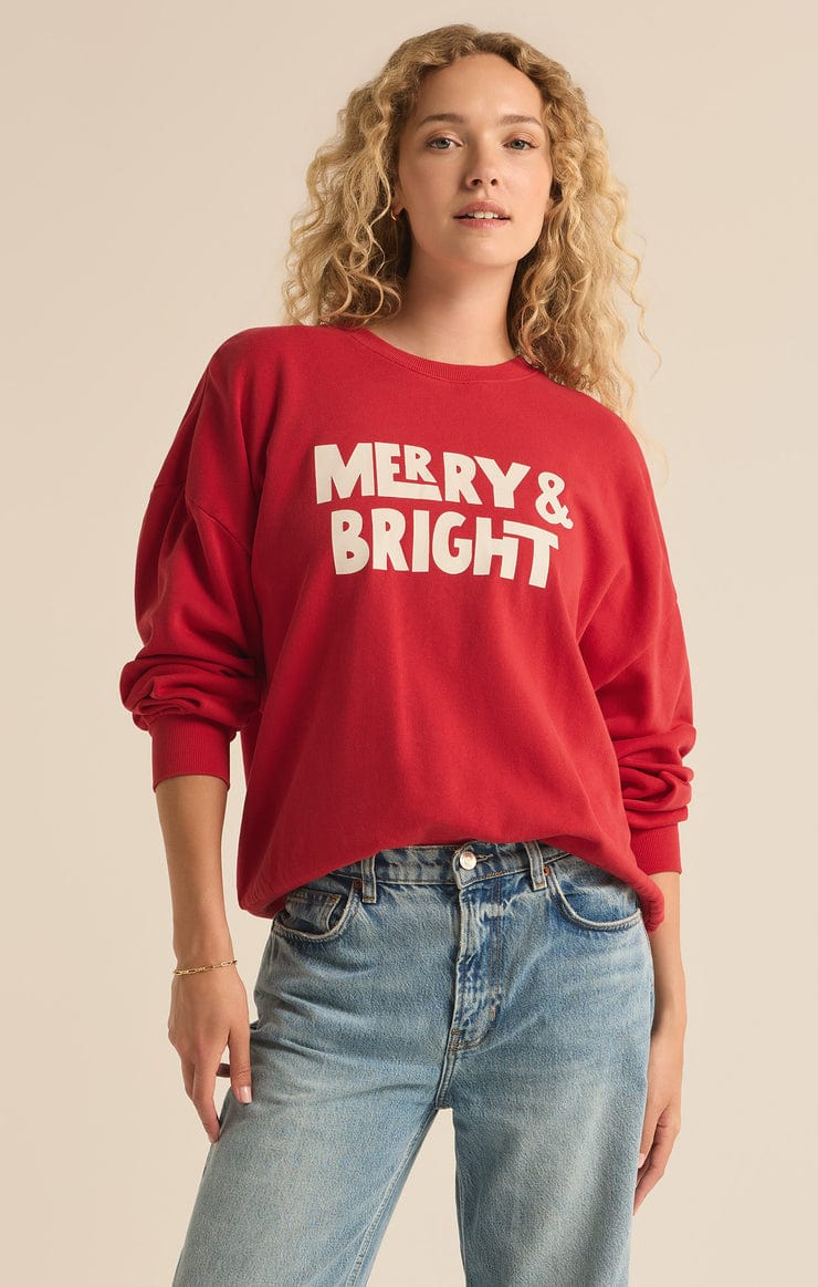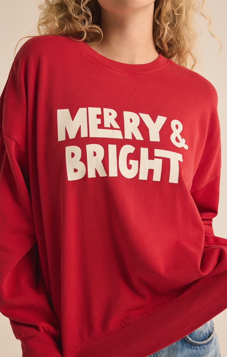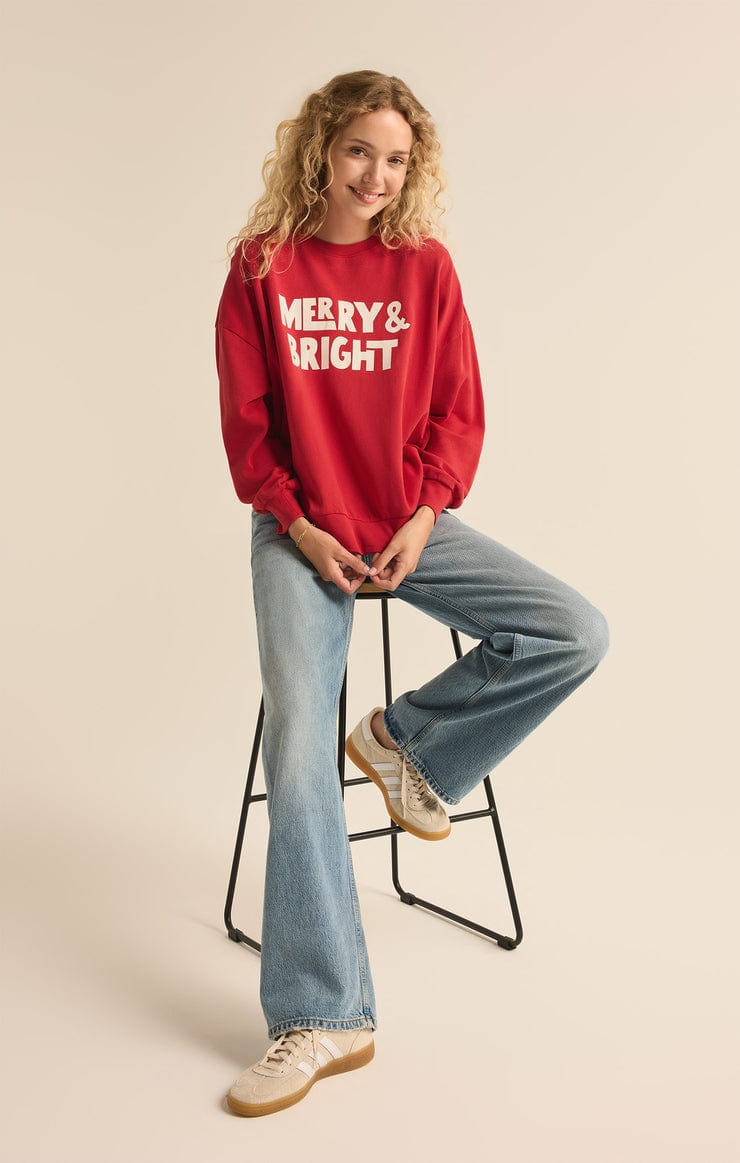 Enveloppez-vous de confort toute la journée avec ce sweat-shirt Bright surdimensionné de Z Supply. Confectionné en molleton brossé 100 % coton, il offre une sensation super douce, puis vous tiendra bien au chaud. Doté d'un joyeux graphique sérigraphié « Merry & Bright », ce pull décontracté à col rond ajoute une touche festive à votre garde-robe, parfait pour embrasser la saison avec un style sans effort.