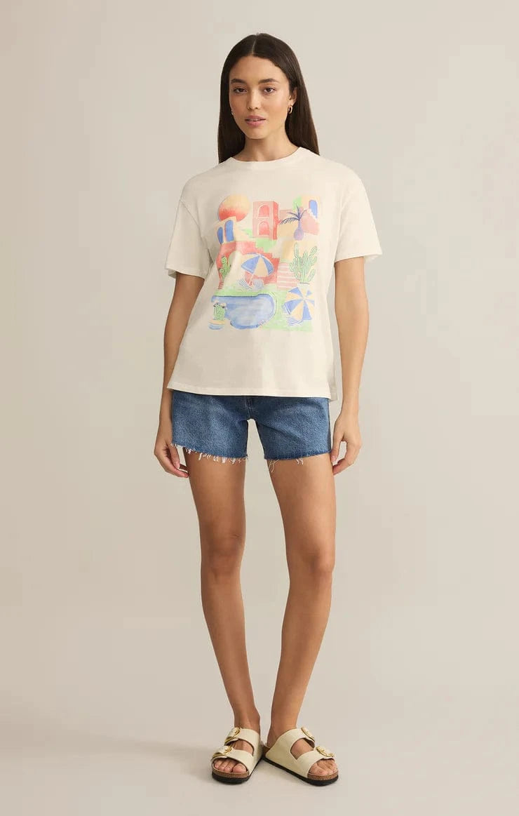 Capturez l'essence de l'été avec ce t-shirt décontracté Fun & Sun de Z Supply. Doté d'un graphisme de scène de plage vibrant, ce style vous apporte le soleil. Fabriquée à partir de tissu jersey doux 100% coton, c’est la pièce ultime à porter au quotidien.