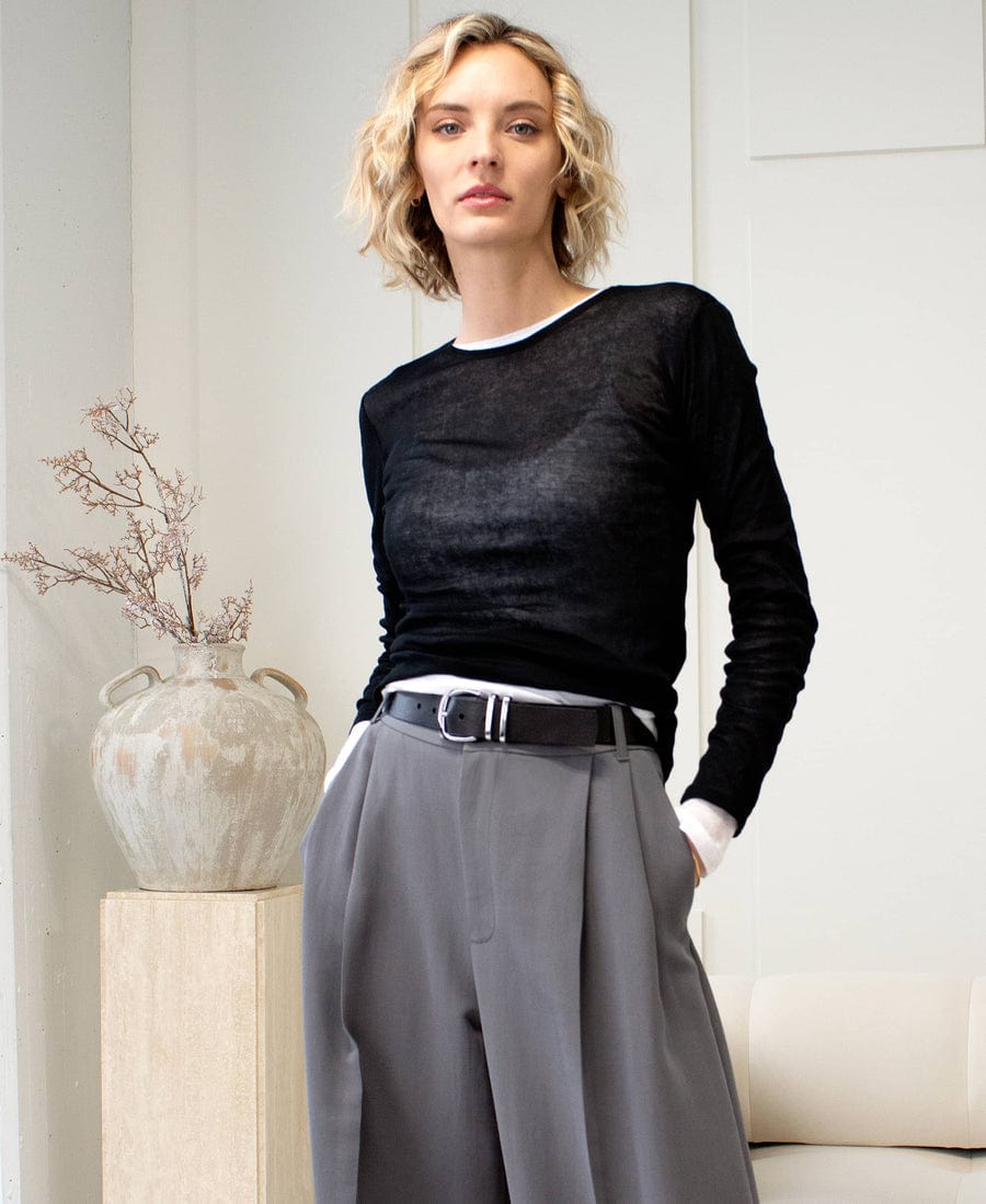 Handcrafted at Toronto's Brave Leather atelier, the "Callianne" belt is designed with a durable leather strap and closes with a bold polished buckle and double loops sourced from Italy. Wear this gorgeous belt with high-waisted jeans or pants.