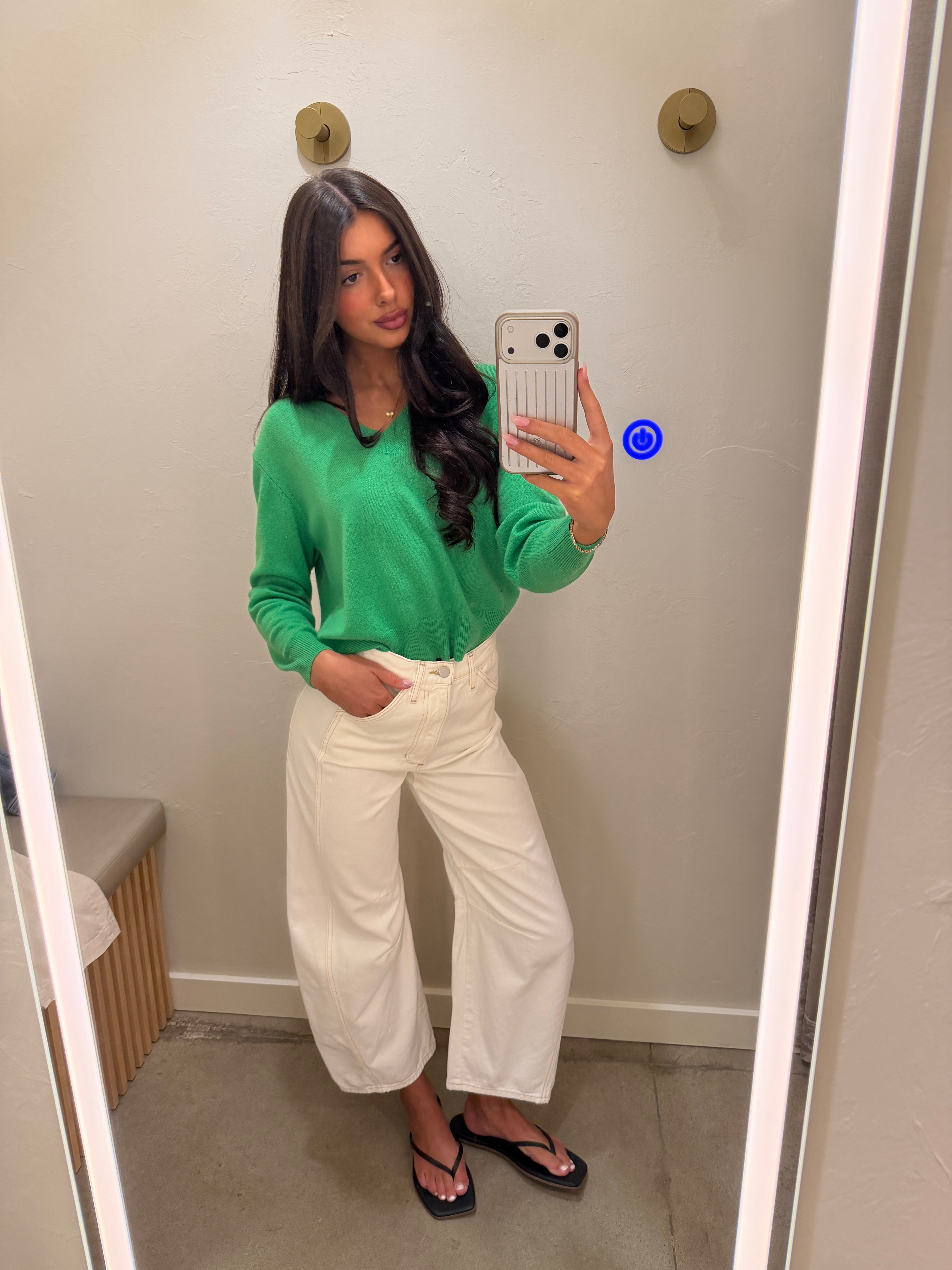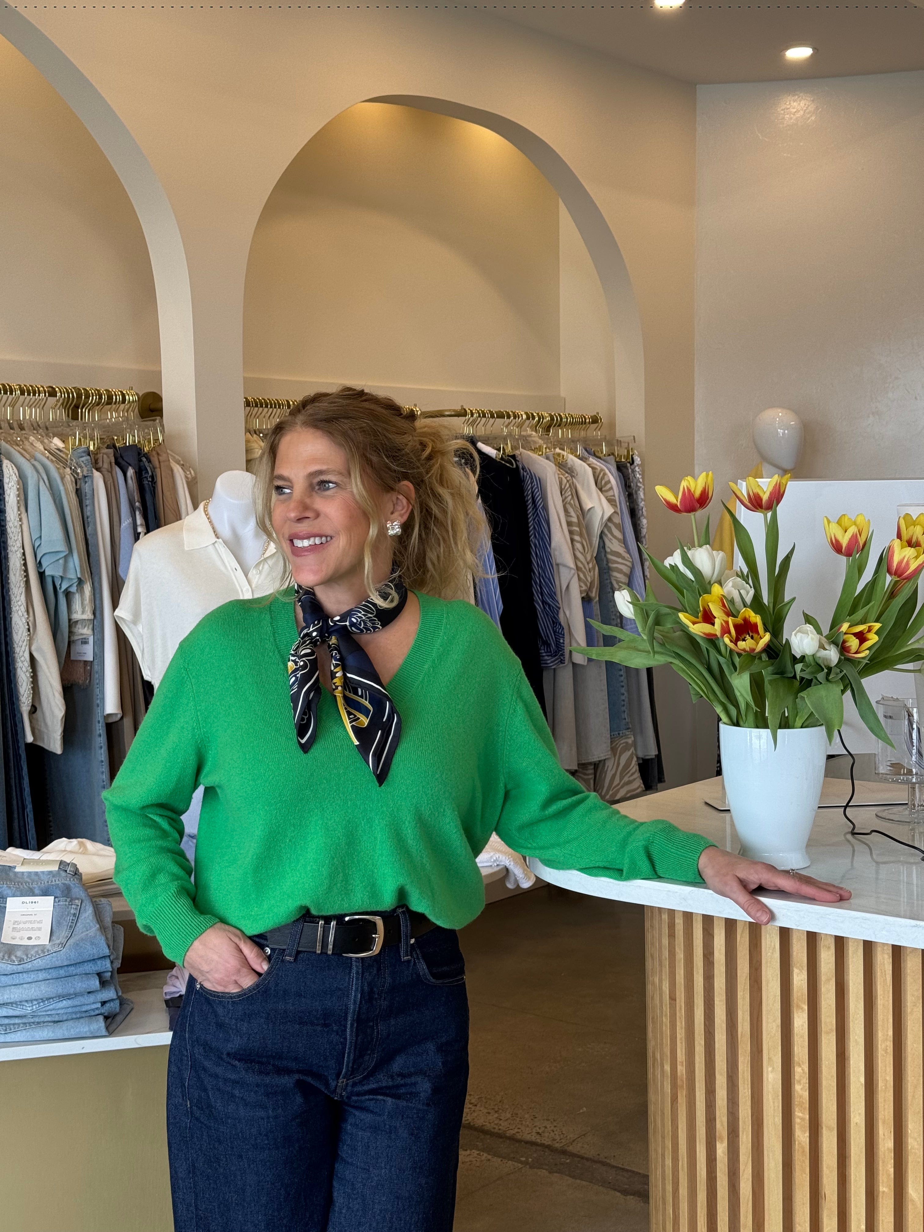 This Hailey cashmere from BRODIE features a straight cut, V-neck and long sleeves. A perfect basic, you'll fall in love with its softness and bright color.
