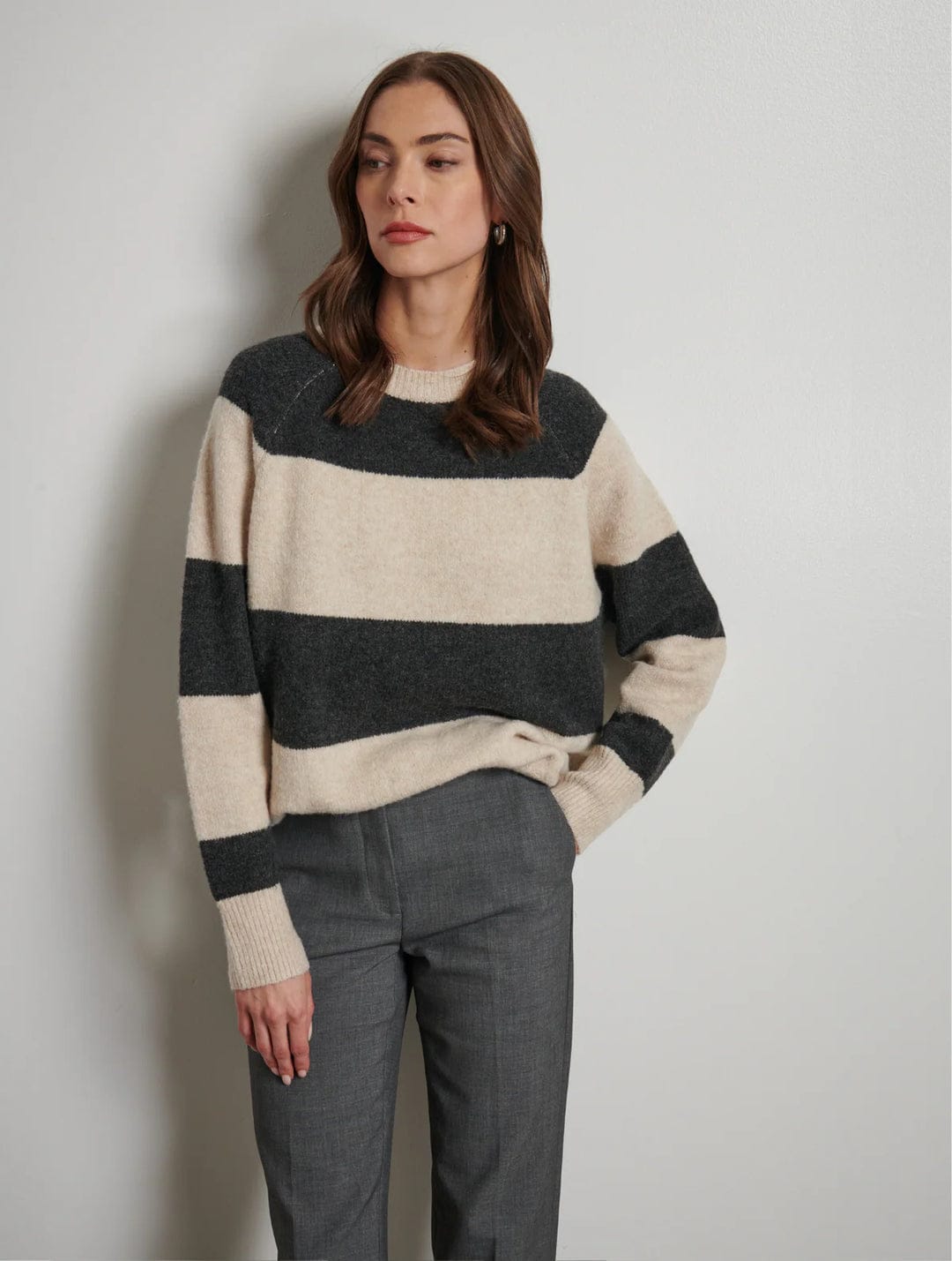 LINE THE LABEL's Austin is a striped sweater with a round neck. Made from a soft, stretchy blend, it features a relaxed fit, perfectly combining elegance and comfort. It's a must-have piece for refined style during colder seasons.