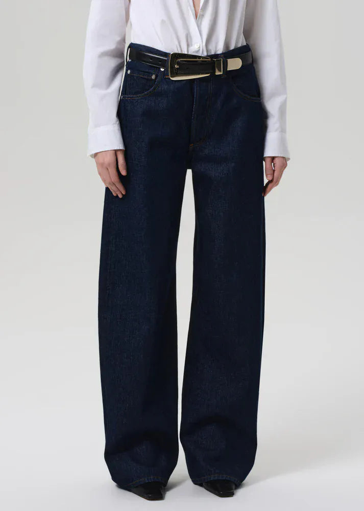 CITIZENS OF HUMANITY's Ayla jeans revisit the loose-fitting silhouette with a relaxed fit that hugs the shape while maintaining a clean, structured silhouette. Its Amherst wash, a deep, dark indigo, adds a touch of elegance to this baggy cut. Crafted in stiff, soft-touch regenerated cotton, it's an easy-to-wear basic that pairs with everything from crisp shirts to fine sweaters.