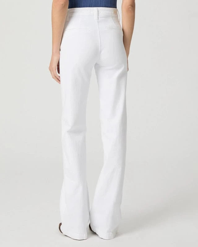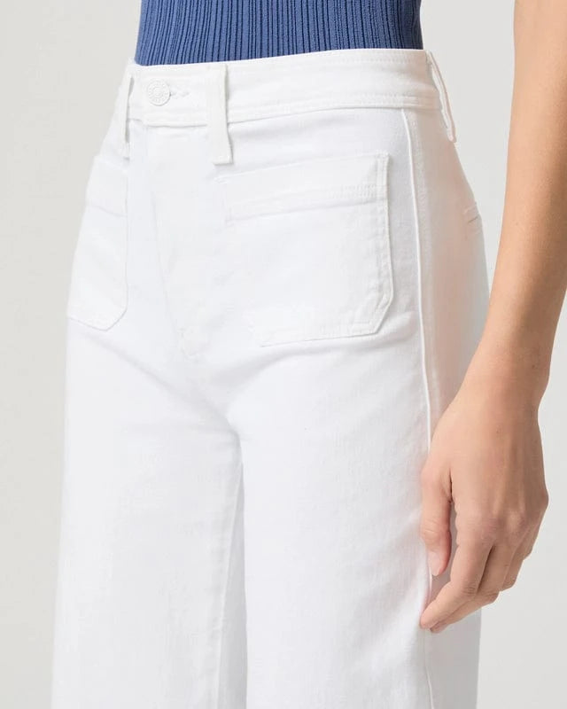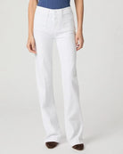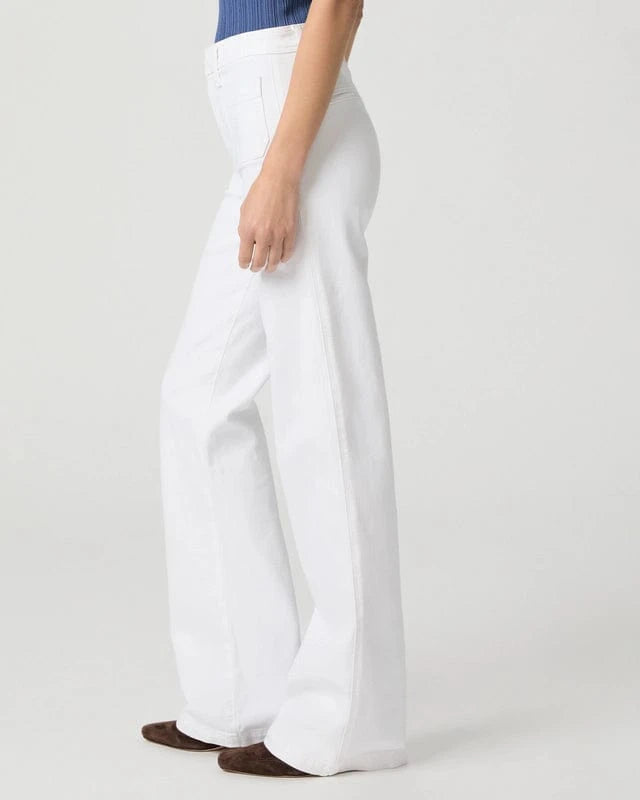Crafted in comfortable, stretchy white denim, these Leenah wide leg jeans from Paige, with front patch pockets, are part of the sailor trend seen on the catwalks. This long, slim silhouette, with its high waist and sleek back welt pockets, is ultra chic in pristine white. The 32" inseam pairs perfectly with flats, and is also suitable for petite women wishing to wear it with heels.