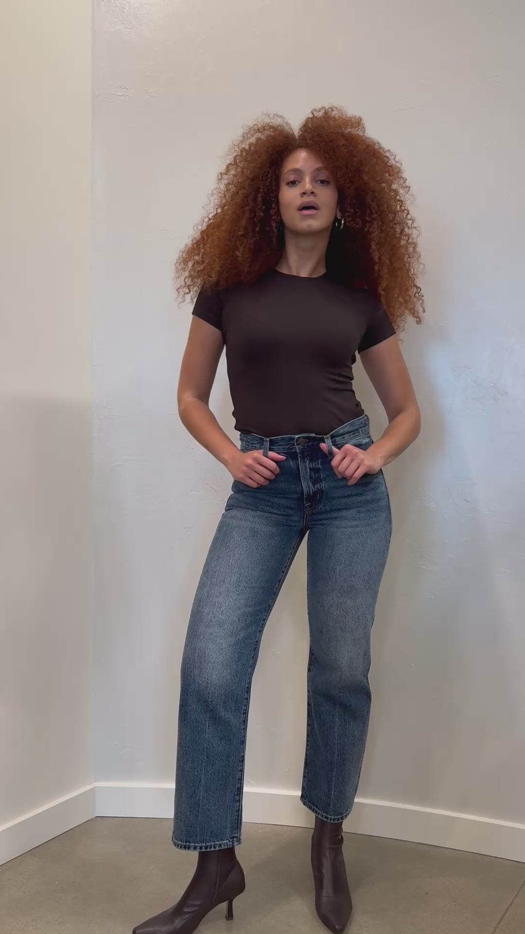 PISTOLA's best-selling jeans that master proportions. The Lexi features a perfect mid-rise waist, their iconic arched straight leg and a subtle curve at the knee that creates volume effortlessly. With a 29" inseam, the silhouette tapers to a cropped ankle and clean hem. Crafted in PISTOLA's rigid Artisan denim, this model features an intense dark wash with a slight faded effect at the knees and thighs.