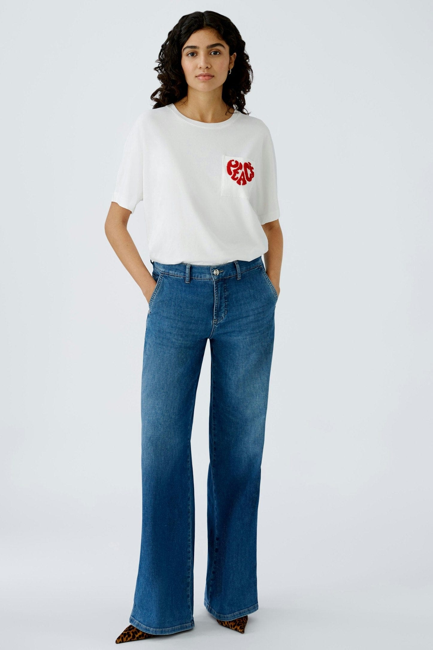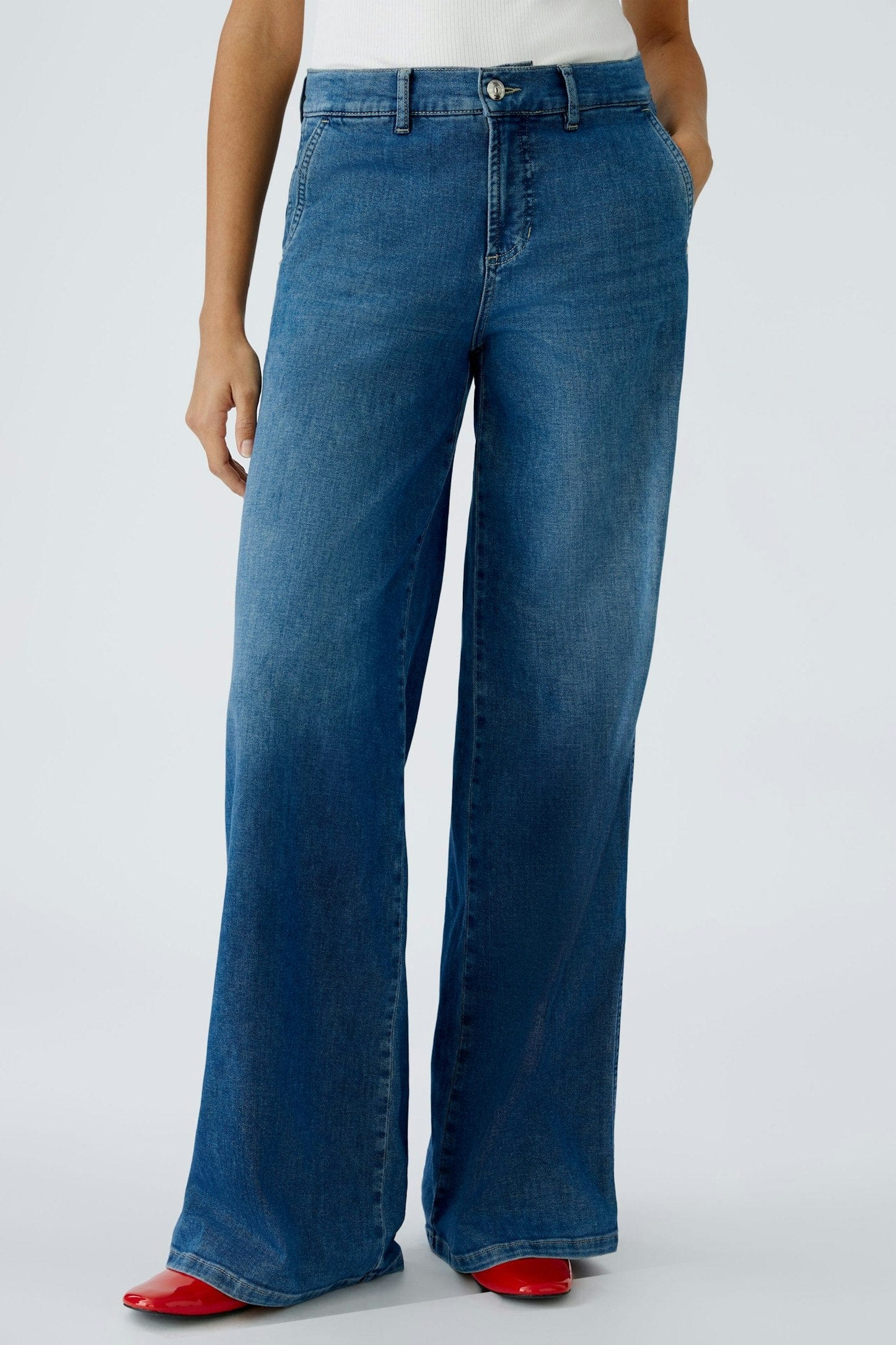 The Wide Leg by OUI Fashion is an A cut jean in soft denim. Made with elastomultiester, they offer excellent elasticity and shape recovery. They'll become a wardrobe favorite.