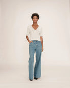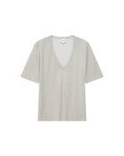 Le t-shirt en maille Taylor de GRACE & MILA est un basique sublimé par une touche de lurex qui propose une silhouette lumineuse. La coupe droite et les manches courtes s'associent à une encolure en V profonde et dessinent une allure féminine et élégante.