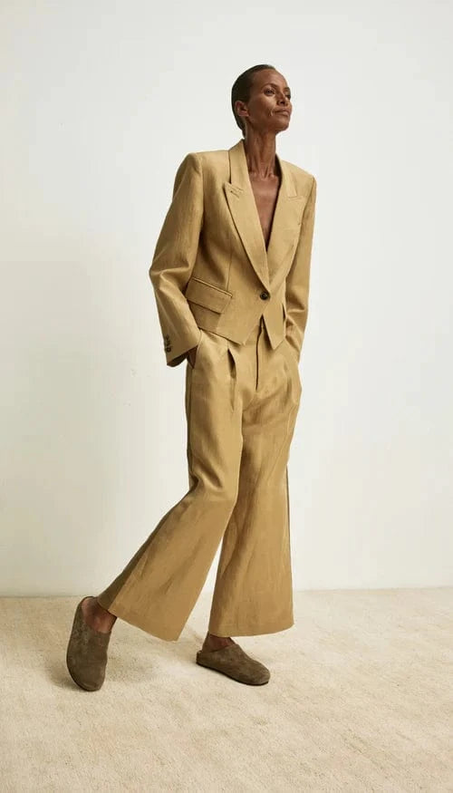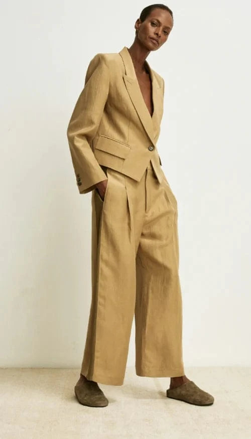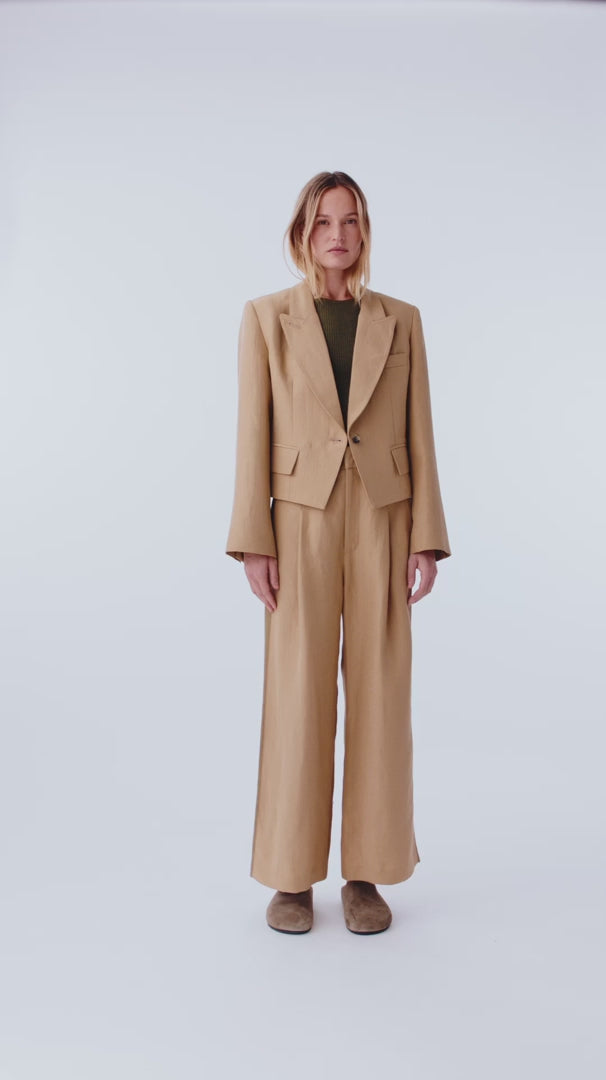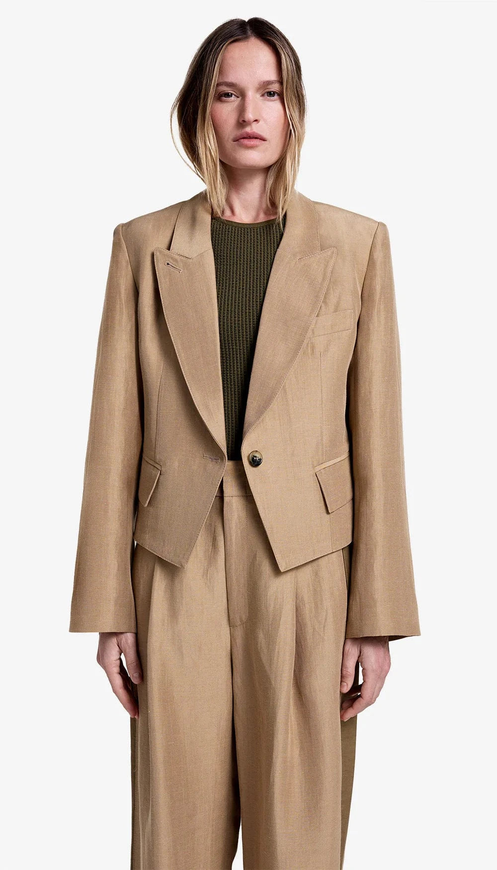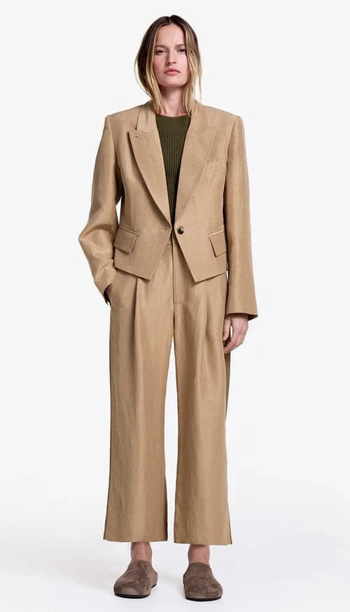 Casual with marked shoulders, SMYTHE's Cadet Blazer falls to the waist and features wide sleeves and a flattering angled hem. Suitable for both indoor and outdoor wear, pair this blazer with the Crewneck Midi Dress from the same collection and a pair of tall boots.