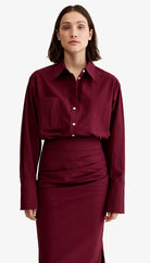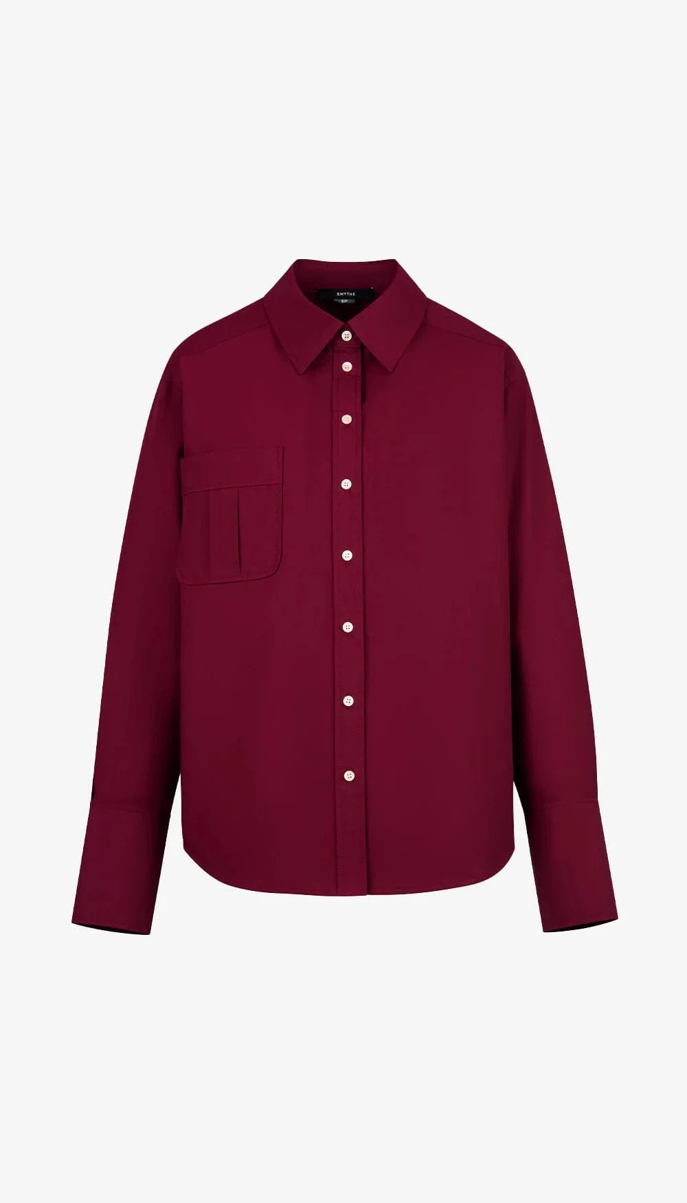 With its relaxed fit, this new oversized shirt from SMYTHE features a classic collar, dropped shoulder seam, patch pocket and pan hem. Pair with the Asymmetrical Skirt from the same collection.