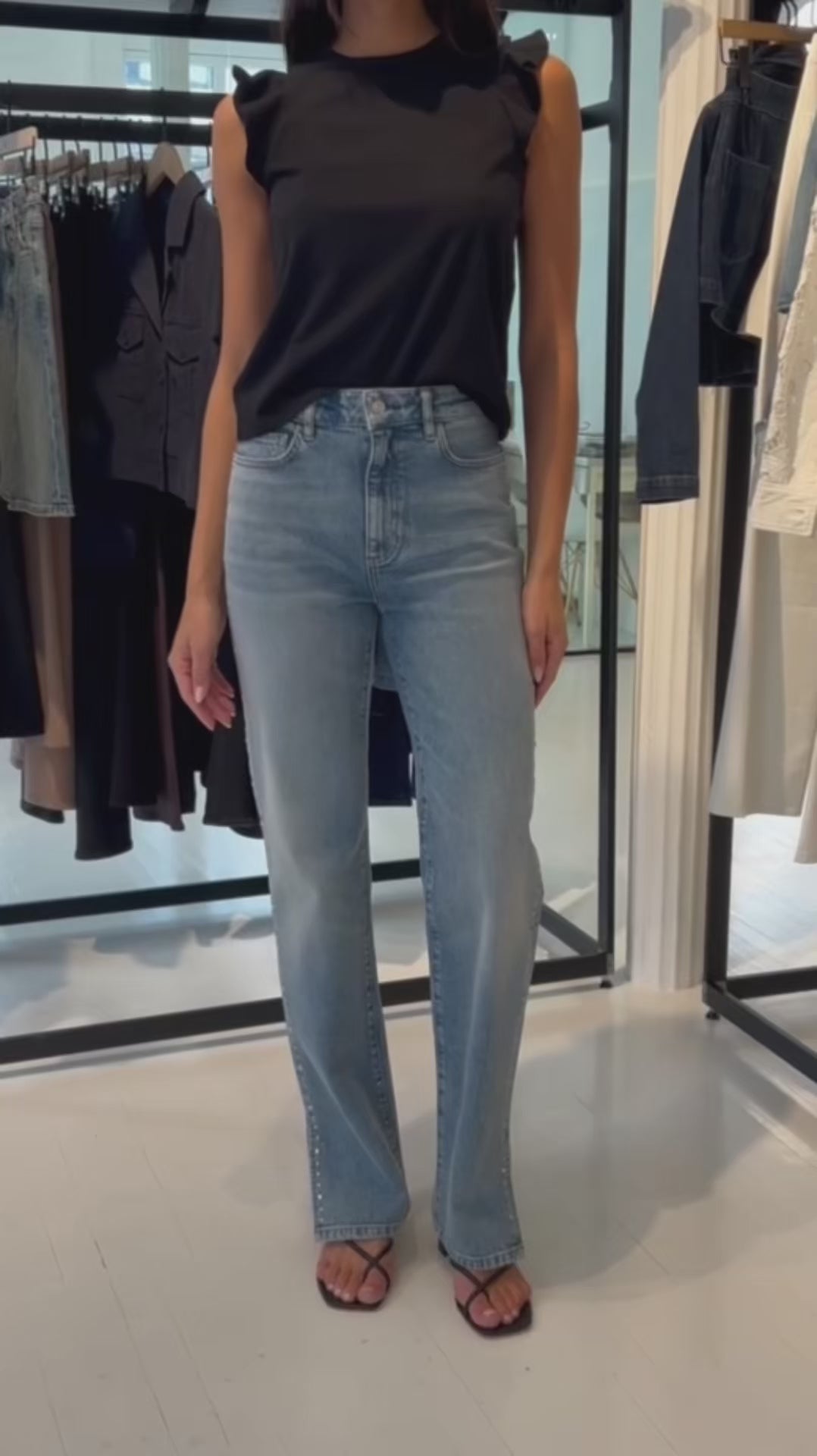 - Full-length straight leg.