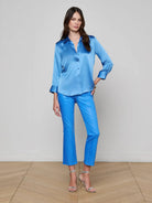 L'emblématique chemise Dani en soie à boutons de L'AGENCE est un indispensable de toute garde-robe. Ce best-seller intemporel, de retour dans un bleu régate éclatant, est confectionné avec des manches 3/4 conçues pour mettre parfaitement en valeur vos bijoux. Il est donc inutile de retrousser les manches. Portez cette chemise avec un jean blanc pour une tenue toute en fraîcheur.