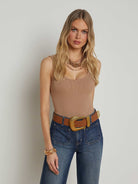 Avec son décolleté plongeant, sa coupe flatteuse et sa maille côtelée extensible, le bodysuit Nica de L'AGENCE est LE basique par excellence. De retour dans un joli cappuccino neutre, il est à porter seul ou sous un veston.