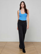 Avec son décolleté plongeant, sa coupe flatteuse et sa maille côtelée extensible, le bodysuit Nica de L'AGENCE est LE basique par excellence. De retour dans un joli bleu régate éclatant, il est à porter seul ou sous un veston.