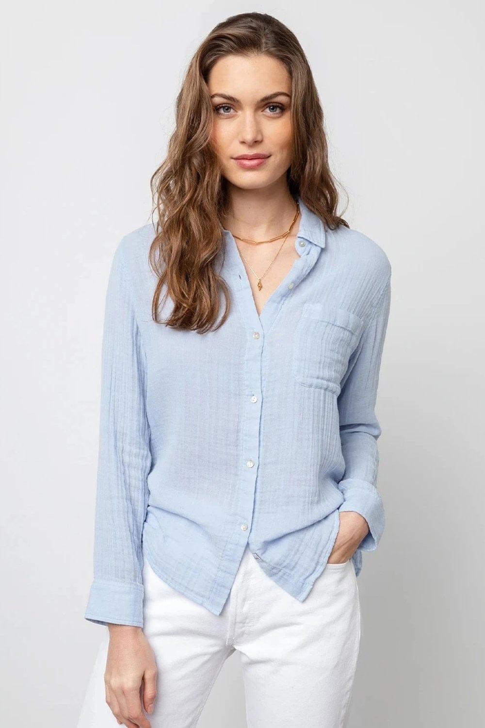 La chemise Ellis de RAILS, d'un bleu classique, s'intégrera facilement à votre garde-robe estivale. Fidèle à la coupe décontractée emblématique de la marque, elle est ornée de jolis boutons en nacre et d'un ourlet arrondi qui se porte aussi bien rentrée que non rentrée. Associez-la à un jean, une jupe ou un short, ou enfilez-la par-dessus votre bikini à la plage pour une allure de paréo ultra-doux.
