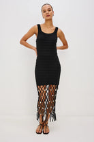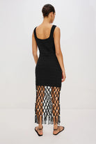 Le paradis retrouvé. La robe Nastia de RAILS est une robe longue cintrée à larges bretelles. Confectionnée dans une luxueuse maille stretch, elle est texturée des épaules jusqu'à mi-cuisse, puis se prolonge en un filet ajouré crocheté orné de coquillages. Faites sensation en vacances avec cette robe.