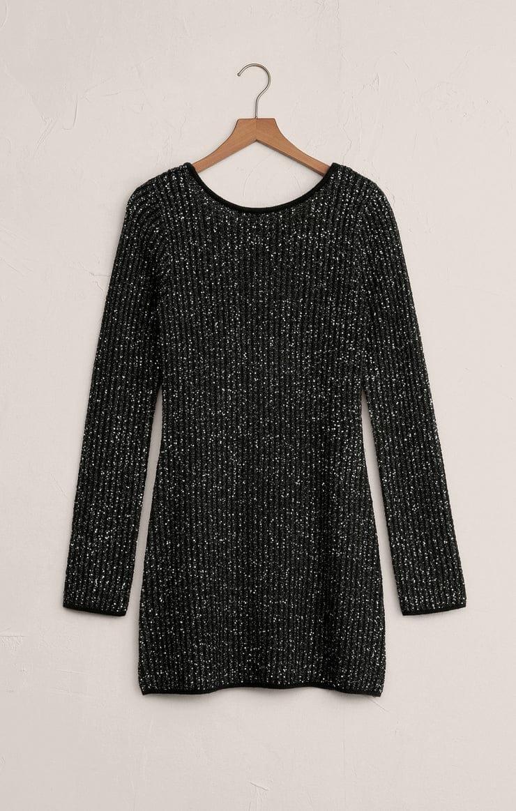 Une mini-robe scintillante, audacieuse, mais confortable et facile à porter. La mini-robe à sequins scintillants La Marca de Z SUPPLY est conçue pour capter la lumière. Son encolure ronde et ses manches longues allient brillance et confort. Elle deviendra votre go-to pour les fêtes.
