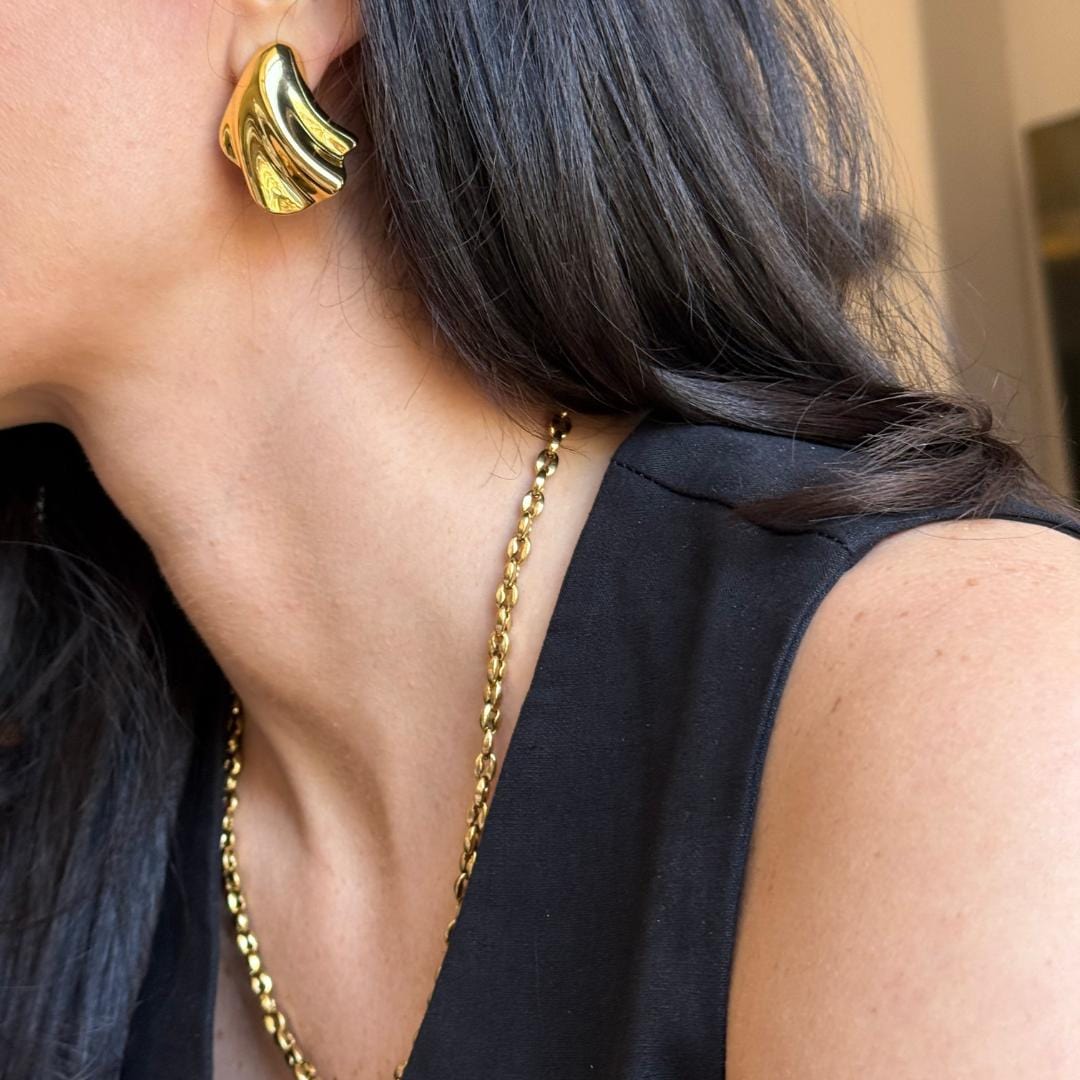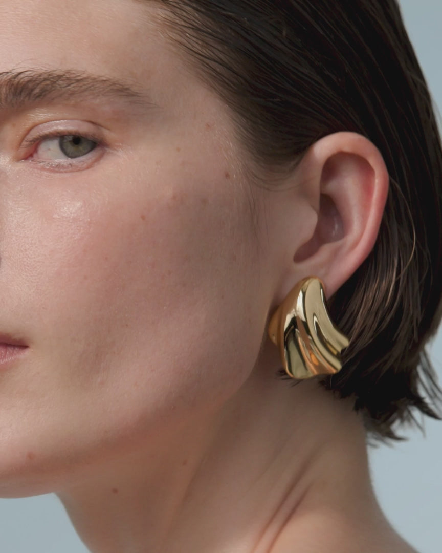 The undulating peaks and dunes of the shell are highlighted on these Lydia earrings by Jenny Bird. Flared for lightness, they're also paired with lobe enhancers for optimal support.