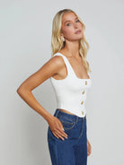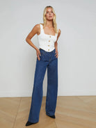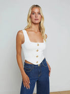 Discover the perfect little ivory top in a powerful knit that supports and smoothes the silhouette. L'Agence's Saga top finishes with a curved hem that flatters and forgives. Pair it with the Cody Barrel Leg jeans for a completely fashionable look.