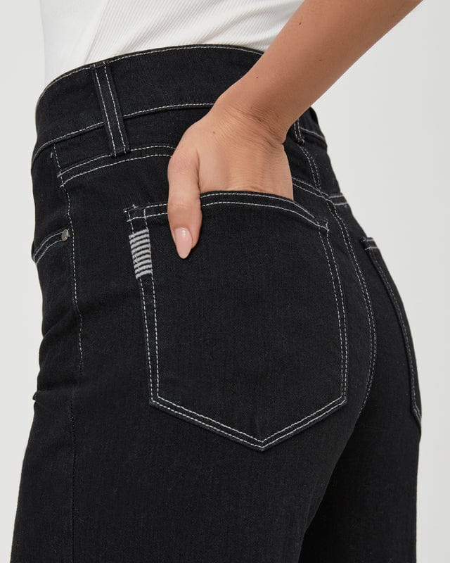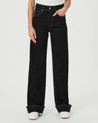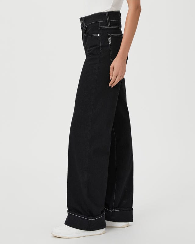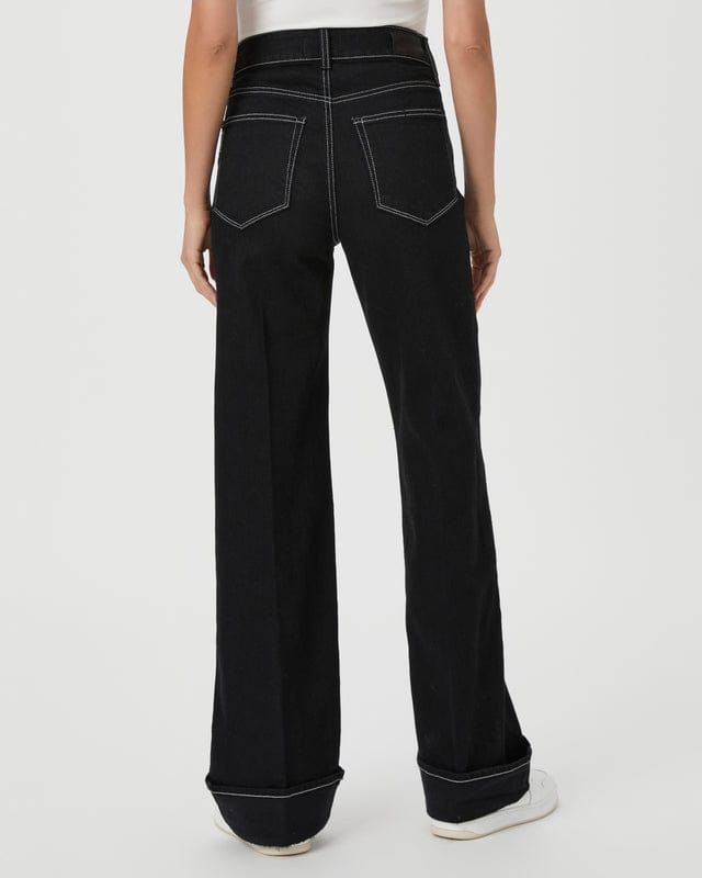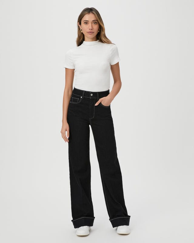 Paige's Sasha features a high-waisted wide leg with a fitted top block and slightly relaxed fit. This pair is crafted from PAIGE VINTAGE denim in a rich black wash with white contrast stitching, a wide lapel hem and a 32" inseam. PAIGE VINTAGE denim simplifies all the work of breaking in your favorite pair of vintage jeans. It combines the comfort of stretch with everything you love about authentic vintage denim to create ultra-soft jeans that feel perfectly lived-in from the very first wear.